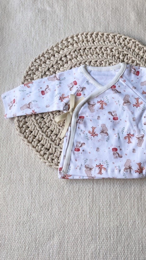 El set es de algodón 100%, calidad suave y abrigada, es el kit básico para llevar a la clínica y terminar tu bolso maternal.