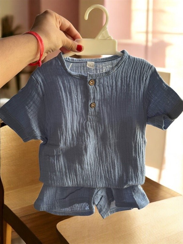 Ser dos piezas , camisa cuello Mao y short con elástico .