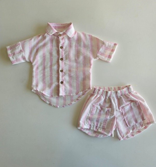 Camisa mangas cortas, molderia corta y ancha tipo Oversize , el Short tiene elástico y Bolsillos en la Parte delantera,