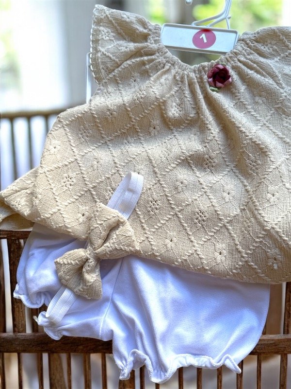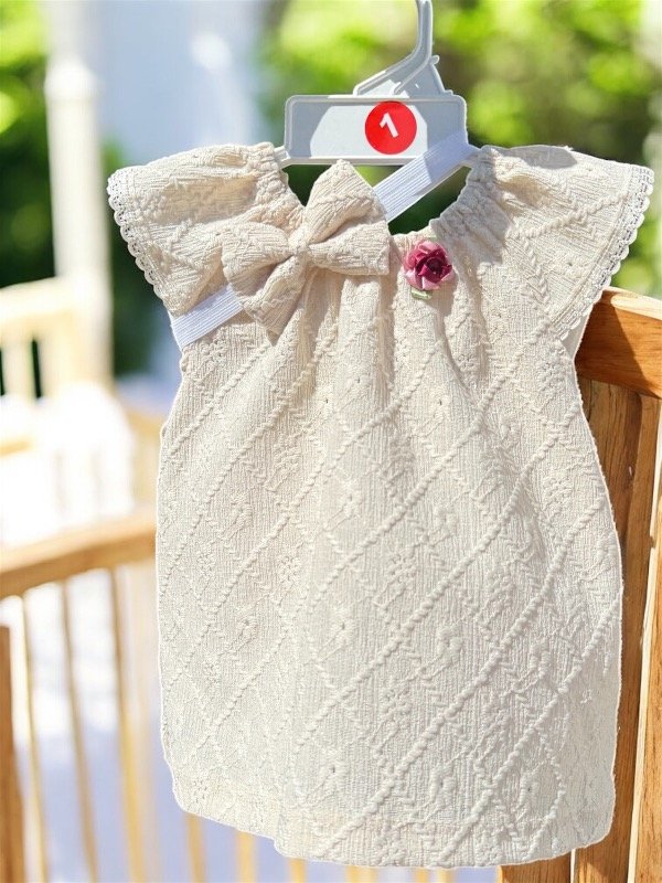 Vestido de bautismo de broderie y puntilla en las mangas.